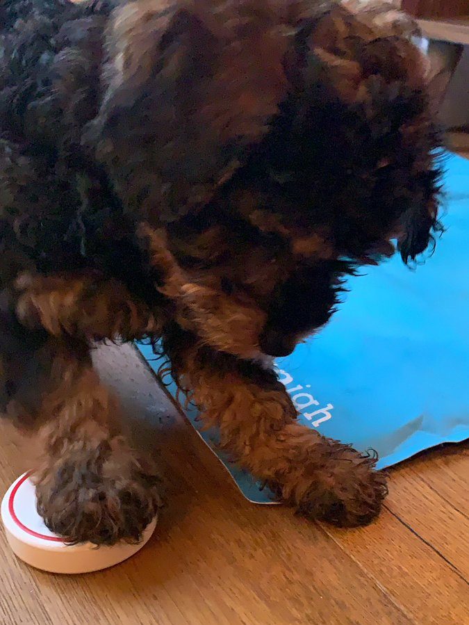 She doesn't. But with a connected smarted home, the things you can do are endless! I've grown up with dogs all my life but never had a puppy. With this comes the great responsibility to train her. Rather than bark or scratch the door, I wanted to teach her to use one of these buttons which could notify us that she needs something.